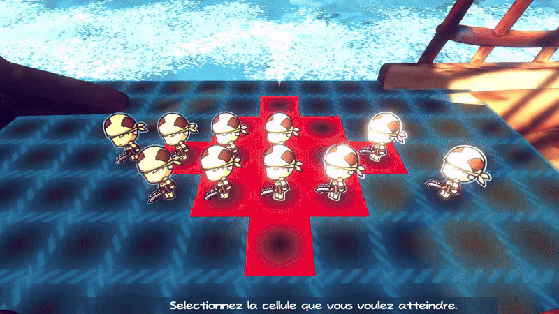 • Since the player can only aim enemies aligned with him, this created an awkward situation where the player would wait for the enemy to shift to the correct line but instead the enemy would advance on their own line, out of reach of the player. It was causing frustration (yes, again) and was not rewarding the player’s anticipation. So I modified the AI of the enemies and made it so that when two of his possible destination squares are equidistant from the player but one is aligned with the player, he will favor it. Thus, enemies are more often aligned with the player, and more predictable for him.